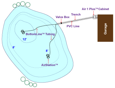 According to biologists at Vertex Water Features, during summer months when water is warm, oxygen can be consumed faster than it can be replenished. Ponds and lakes may become “stratified”. Warmer, oxygen-rich upper water lays on top of cool, deep, dense water with lower oxygen. These conditions reduce available fish habitat. Beneficial bacteria that slows the breakdown of organic matter on the bottom of the lake leads to muck buildup. Excess nutrients from muck are made available for weed and algae growth. Noxious ammonia and hydrogen sulfide gasses cause odor problems.
