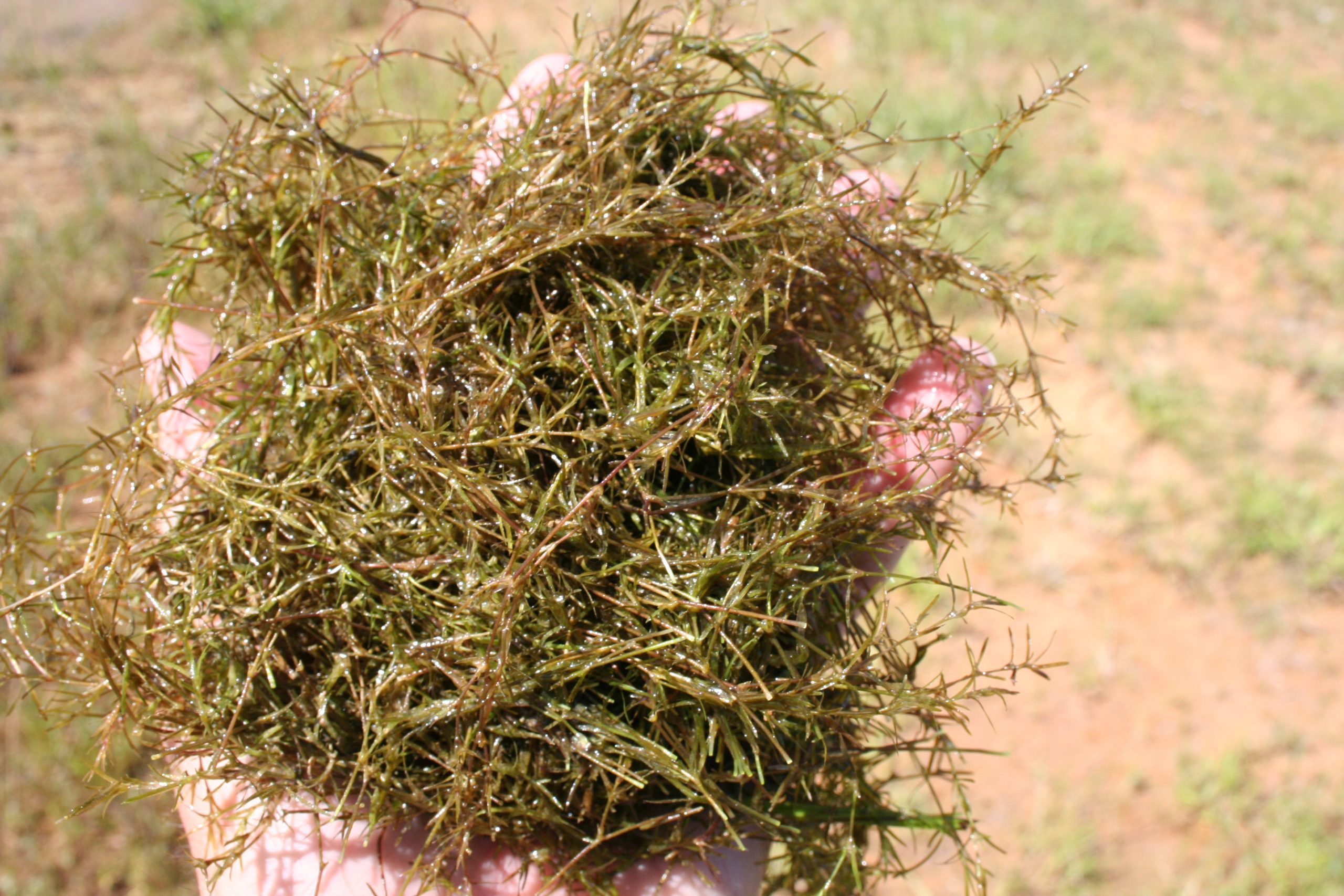 A handful of southern naiad, also called bushy pondweed. It’s thick dense mats often obstruct shallow waters.